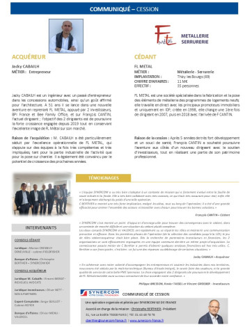 Communiqué de presse cession FL METAL