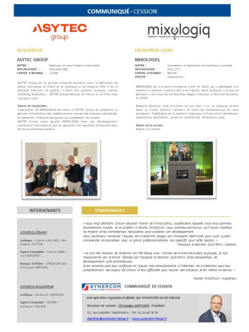 Communiqué de Presse Cession MIXOLOGIQ