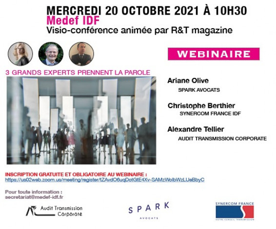 Christophe BERTHIER, associé SYNERCOM FRANCE IDF, aura le plaisir d’animer ce webinaire le 20/10/21 aux côtés d’Ariane OLIVE - SPARK AVOCATS et Alexandre TELLIER - AUDIT TRANSMISSION CORPORATE, deux experts de ces opérations.