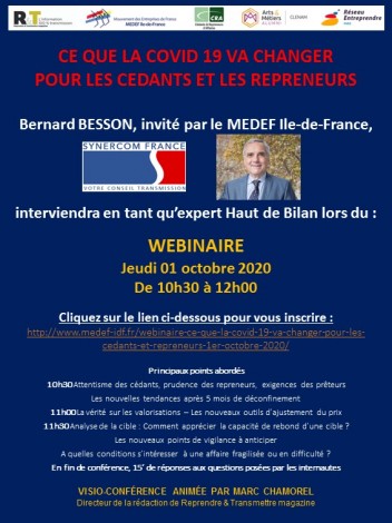 WEBINAIRE = Bernard BESSON, invité par le MEDEF Ile-de-France, interviendra en tant qu’expert Haut de Bilan